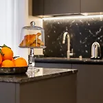 I badrummet finns även en bidé, en separat toalett och en dusch. Hårtorkar, badrockar och badmössor ingår för extra komfort.